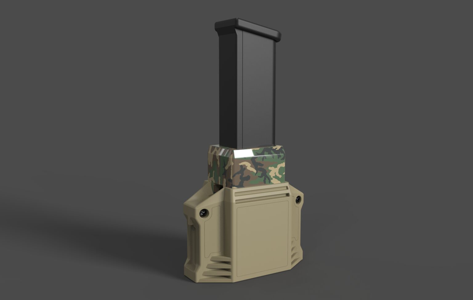 Design and launch a compact, durable polymer, spring-loaded bench loader that speeds up one-at-a-time round loading of double-stack Glock-pattern 9mm and .40 S&W magazines. The product must be easy to use, protect the user’s thumbs from wear, include an unloading/round-stripper feature, and deliver reliable performance for both standard and high-capacity mags at an affordable price point. Mechanical engineering developed in collaboration with Chris Greenwalt of Greenwalt Designs.