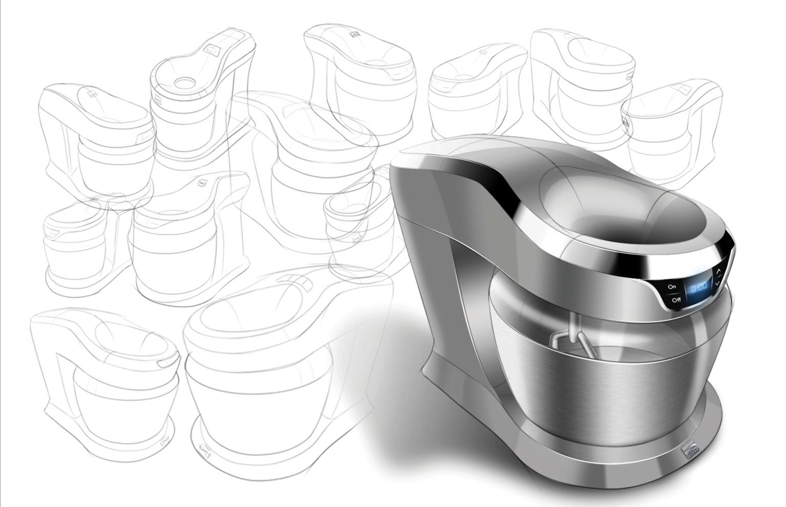Develop and launch a competitive premium stand mixer that delivers powerful performance, innovative design, and versatile functionality for a wide range of baking and food-prep tasks. Incorporate next-generation features — including a pour-through head for adding ingredients during operation, a 360° splash guard for mess-free mixing, and integrated LED lighting for enhanced visibility.