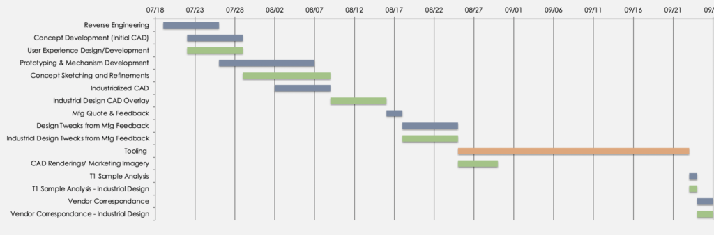 Alignment of product development timelines to include business, engineering, marketing, design, and manufacturing project goals. Competitive market analysis and benchmarking.