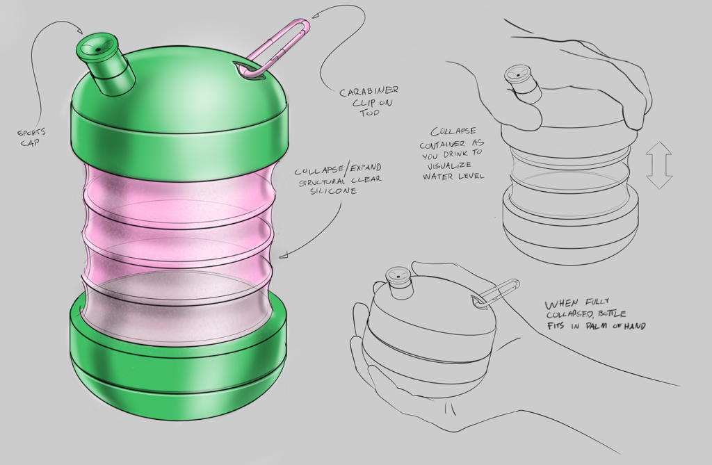 Iterative digital sketches to evaluate form and function of preliminary ideas. Create visual representations and storyboards to help communicate and persuade stakeholders.