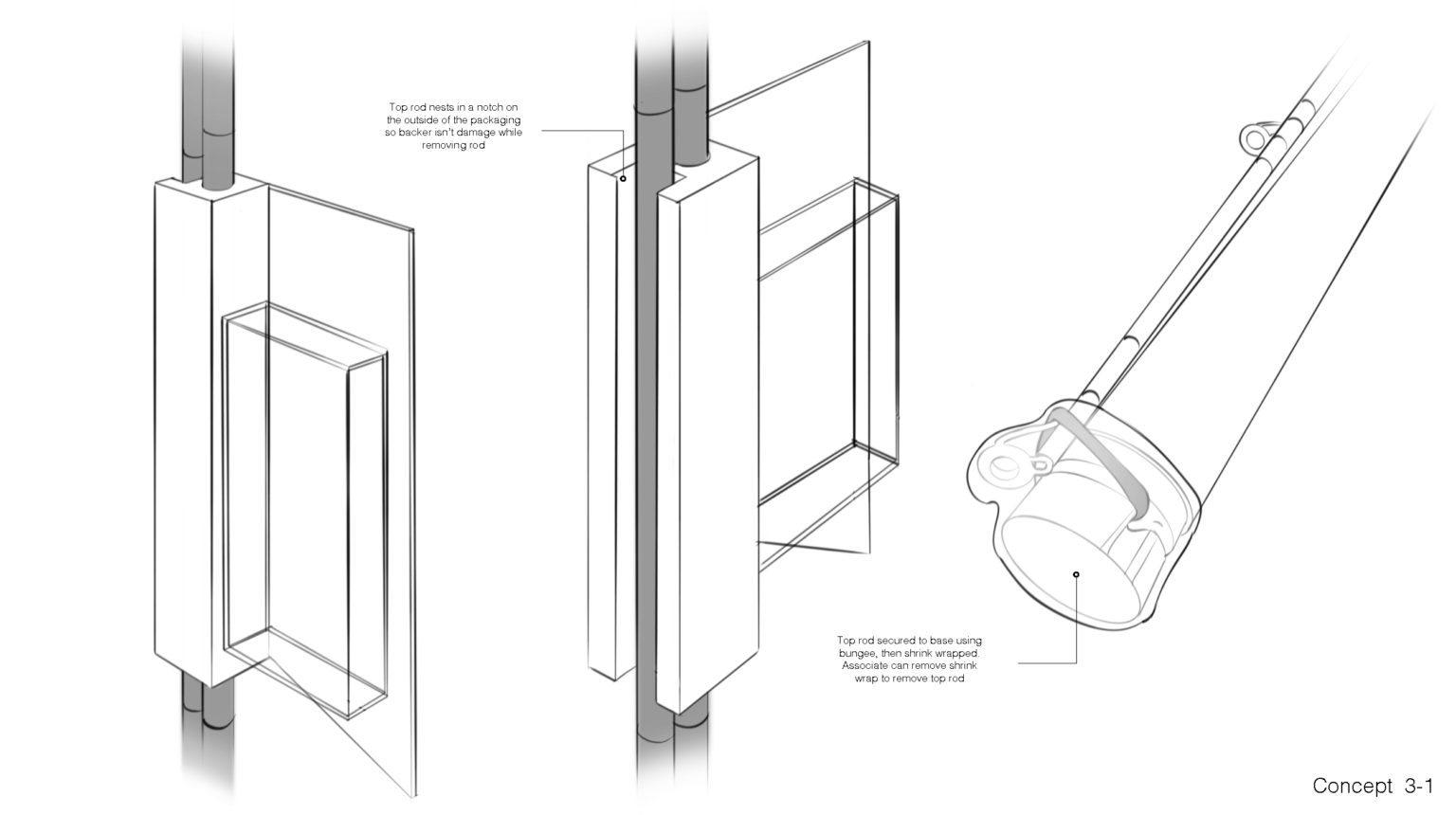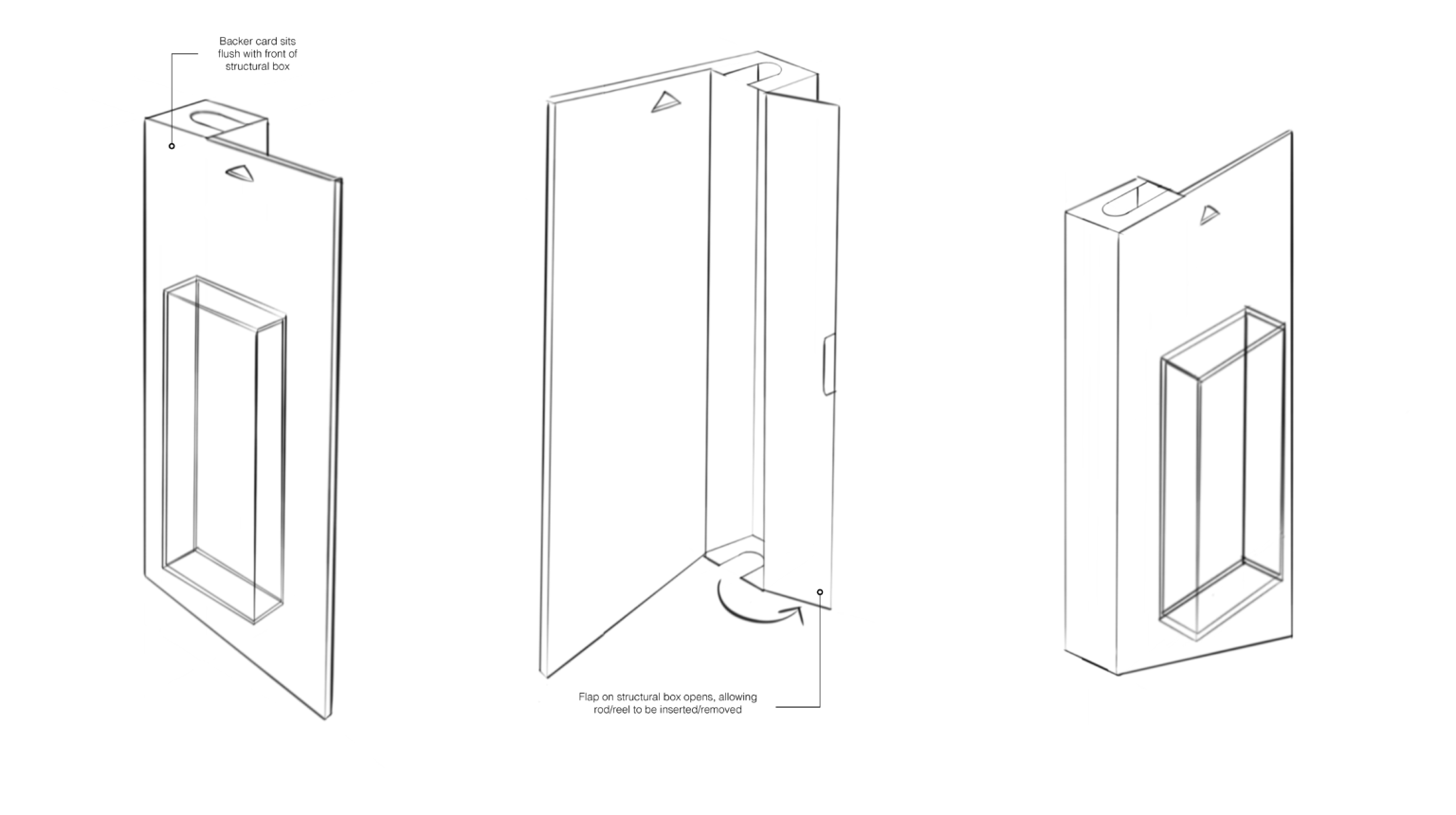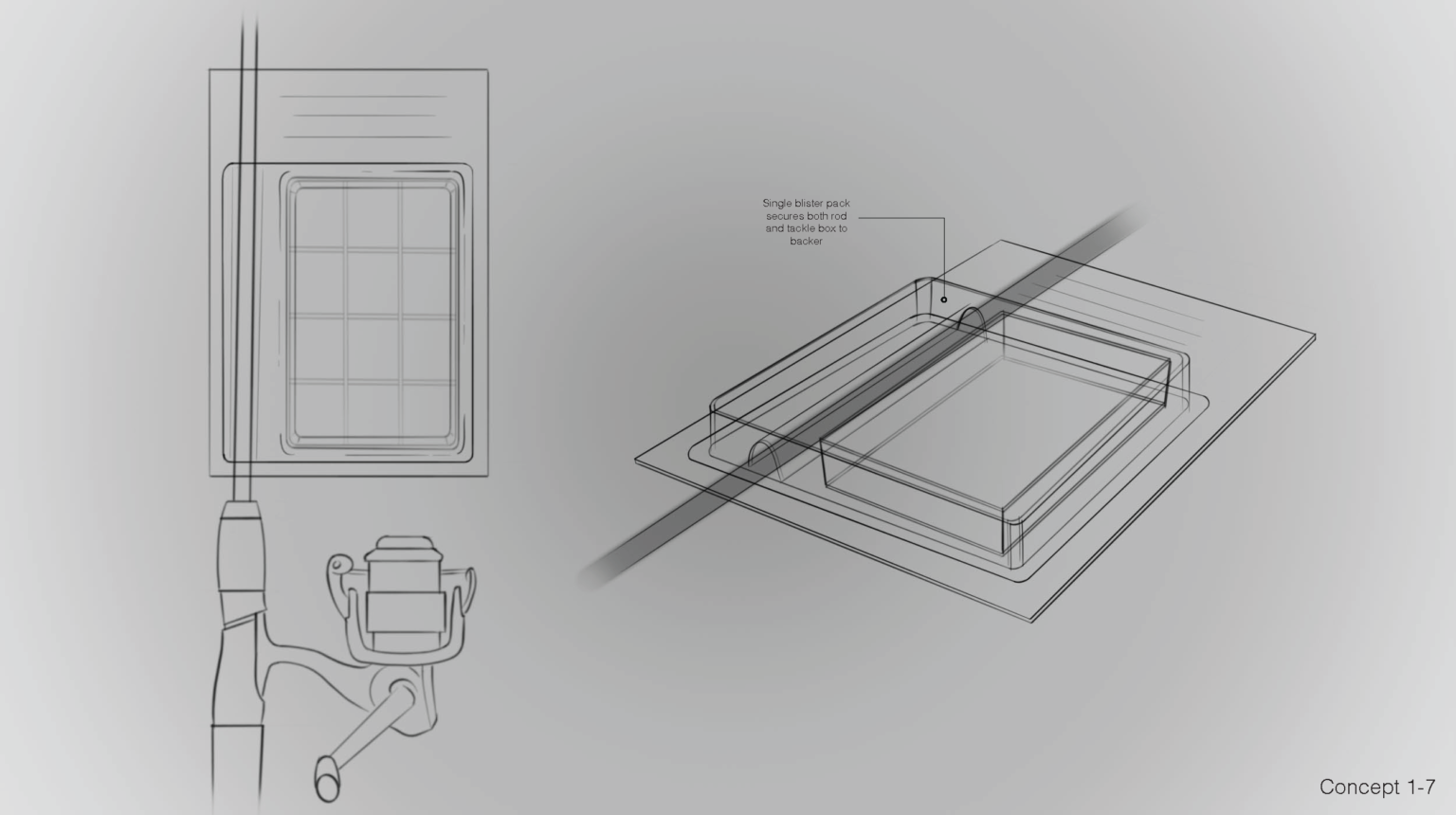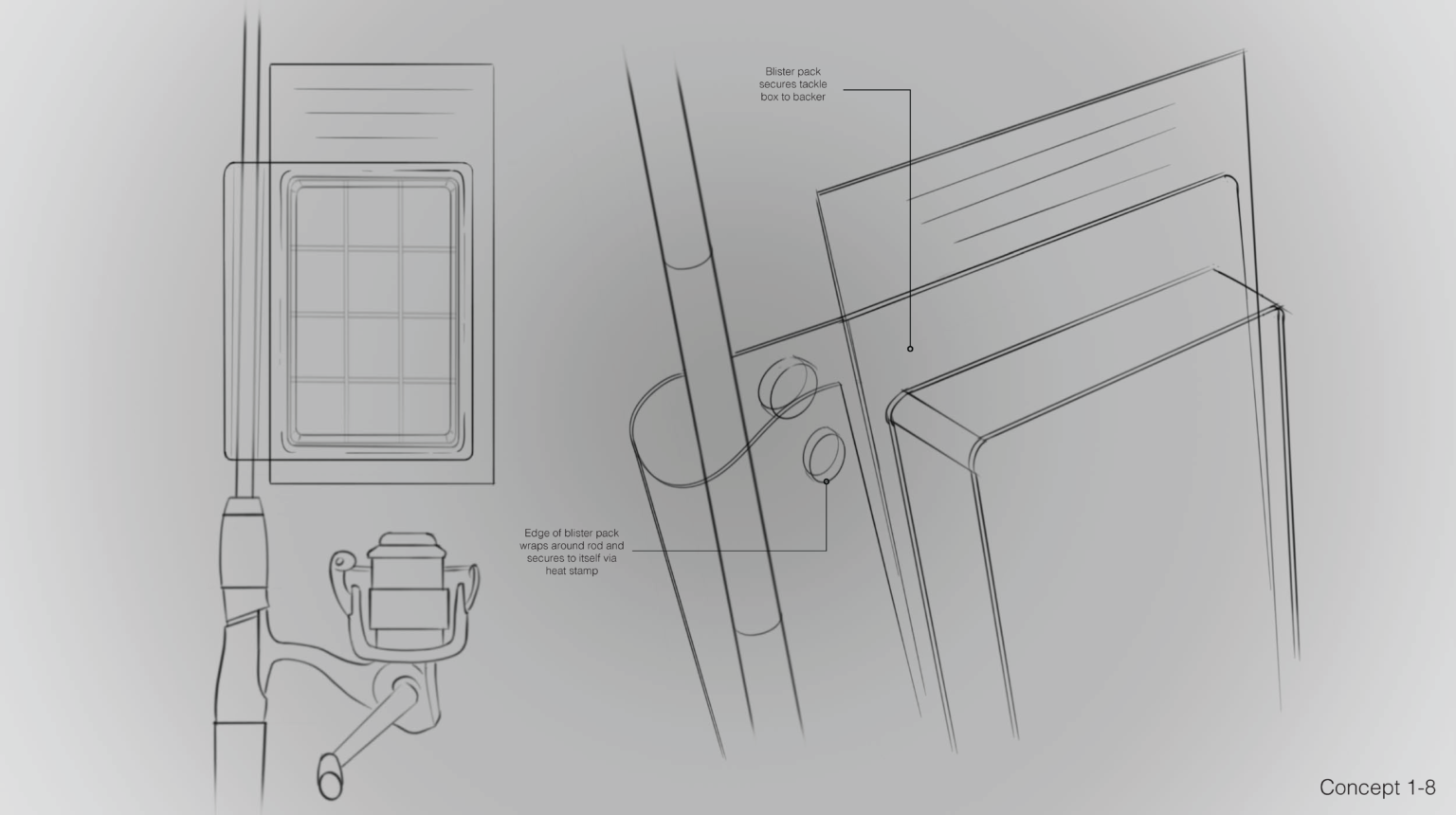 Design and develop packaging for a fishing rod and tackle box combo aimed at beginners seeking a starter kit to spark interest in fishing. The scope includes good/better/best packaging options for various rod and tackle box sizes. Explore innovative and interactive packaging solutions, ensuring the rod and tackle box are showcased together while meeting dimensional requirements for big-box retail shelving and POP displays.